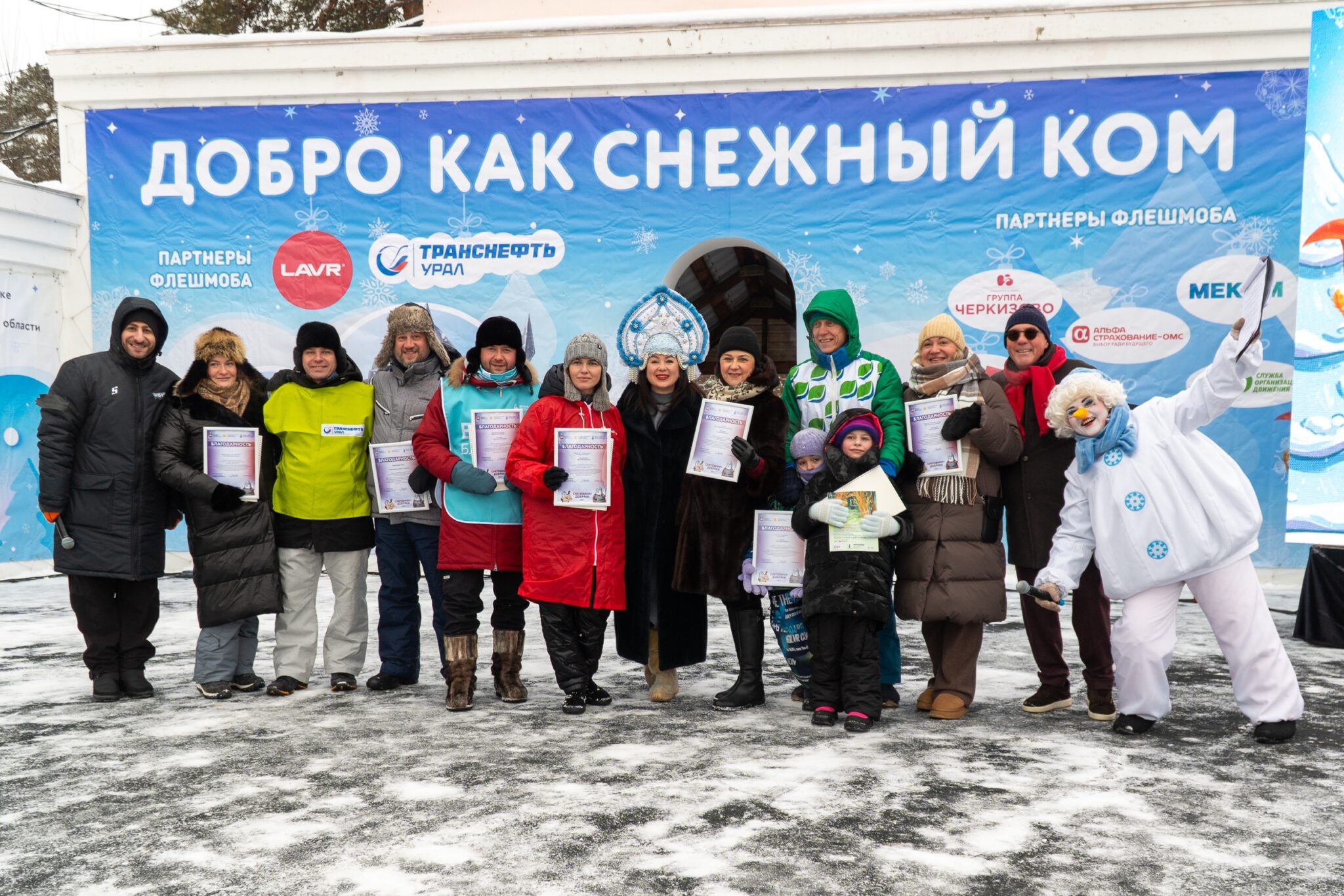 В это морозное воскресенье мы встретились на празднике добрых дел: лепили семью снеговиков, фотографировались, радовались зиме и друг другу. Тема флешмоба в этом году была сказочной — по аллеям появились богатыри и знакомые герои из детства ❄